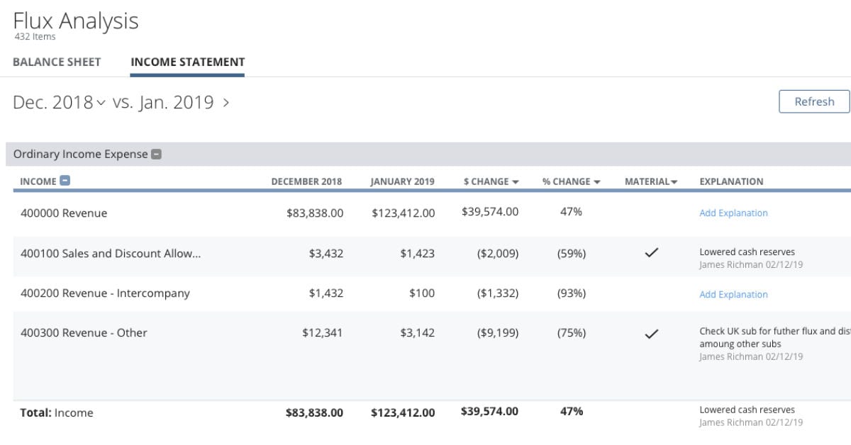 Not only can users spot fluctuations automatically, but there’s also a way to enter explanation text for others to read. Additionally, the balances update dynamically, eliminating the need to worry whether there’s a more up-to-date version available.
